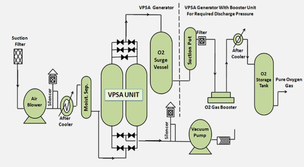 In VPSA based Oxygen gas plants Regeneration process is dine with vacuum pumps,